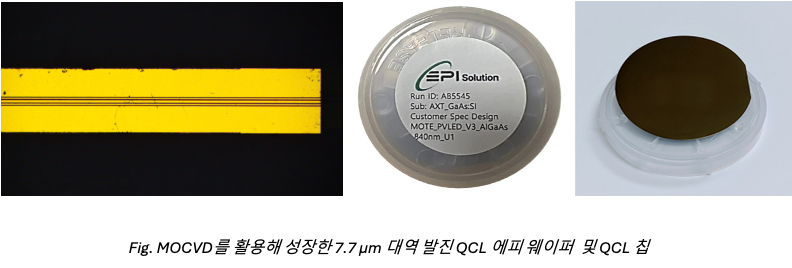 에피솔루션은 MOCVD 기반의 정밀 초격자 성장 기술을 바탕으로 ‘골짜기형 활성층 구조’와 Two-phonon resonance 설계를 적용해 고출력·저전력 QCL을 구현한다. 소자 제작 과정에서는 전자 누설을 최소화하는 공정과 발열을 억제하는 Epi-down 패키징을 도입해 상온에서도 안정적인 연속 동작을 가능하게 한다. 이렇게 완성된 QCL은 가스센서, 의료 진단, LiDAR, 국방 장비 등 다양한 분야에 적용되며, 국내 최초 QCL 국산화와 글로벌 시장 진출의 기반이 될 예정이다.
