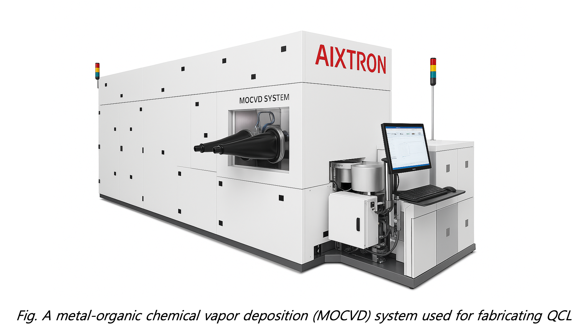 Episolution specializes in the fabrication of QCL epi-wafers by stacking III–V semiconductor thin films—such as InGaAs, InAlAs, and InGaAsP—on InP substrates. Our core growth technique is metal-organic chemical vapor deposition (MOCVD), a widely adopted process in the semiconductor industry known for its high reproducibility and ability to produce multiple wafers with uniform quality in a single run.