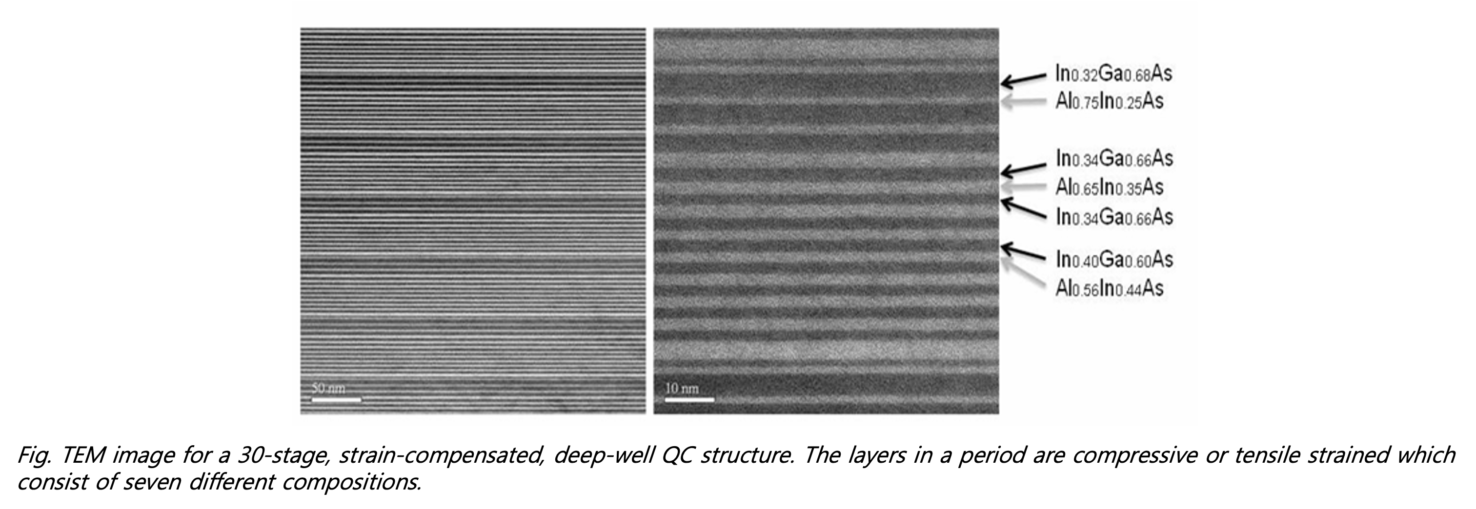 Furthermore, TEM analysis confirmed that the calibrated layer thickness based on HRXRD closely matched the target value within a deviation of less than 5%. This demonstrates the critical importance of precise thickness control for ensuring QCL device performance, and highlights the high reproducibility and reliability of our fabrication process.